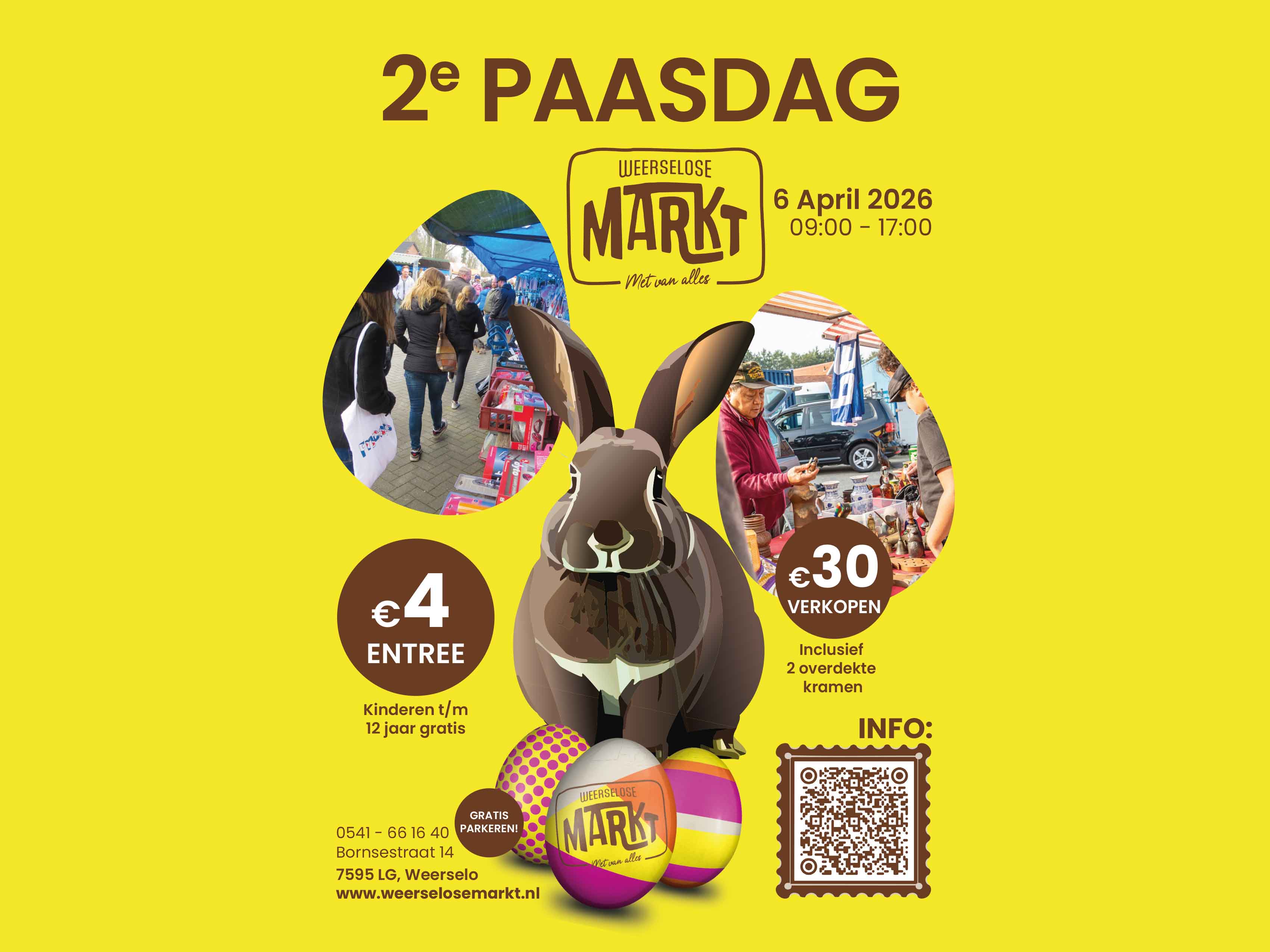 Voor Tweede Paasdag maandag 6 april 2026 zoekt de Weerselose Markt standplaatshouders welke willen deelnemen aan de reguliere markt. Indien je wil verkopen op de Weerselose Markt kun je je makkelijk inschrijven via de inschrijvingslink bovenaan deze pagina.